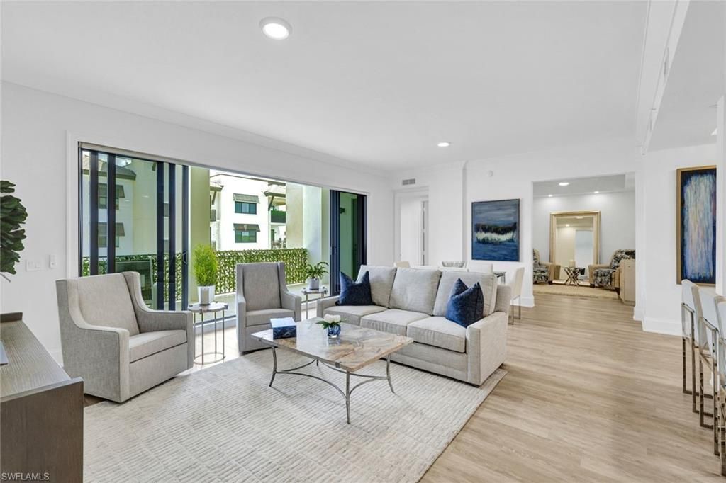 This stunning, fully reimagined luxury residence in the heart of the Naples Design District is ideally positioned on a quiet, non-through street in one of the most peaceful settings within Naples Square. Every surface and system has been thoughtfully redesigned to create a sophisticated, better-than-new living experience. The spacious floor plan includes two bedrooms, a den, two full baths, and an elegant powder room, while the east-facing lanai offers serene mornings and vibrant city views. ...This stunning, fully reimagined luxury residence in the heart of the Naples Design District is ideally positioned on a quiet, non-through street in one of the most peaceful settings within Naples Square. Every surface and system has been thoughtfully redesigned to create a sophisticated, better-than-new living experience. The spacious floor plan includes two bedrooms, a den, two full baths, and an elegant powder room, while the east-facing lanai offers serene mornings and vibrant city views. The gourmet kitchen is a true showpiece, featuring all-new GE Monogram appliances—including an induction cooktop—custom soft-close cabinetry with pull-outs, thick quartz countertops, under-cabinet lighting, and a timeless subway tile backsplash. The spa-caliber primary suite boasts a luxurious Jacuzzi tub, designer lighting, Italian porcelain tile, and beautifully crafted custom closets found throughout the home. As a resident of Naples Square, you’ll enjoy resort-style amenities such as a lushly landscaped courtyard with grills and a fire pit, a spacious Club Room, fitness center, conference room, and secure underground parking for two vehicles (one deeded). Just steps from celebrated dining, boutique shopping, and Baker Park, this completely renovated luxury condo offers the perfect blend of urban convenience and elevated coastal living.
