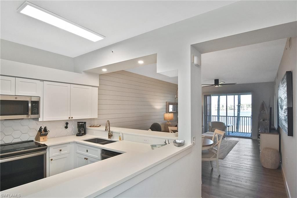 Completely remodeled condo offered turnkey-including all newer large HD TVs. From the moment you enter, you'll notice the bright, open feel created by two kitchen half walls that enhance the lake and fountain views. A shiplap wall extends from the dining area into the family room, adding inviting coastal character. The redesigned kitchen is a standout, featuring new cabinetry with large drawers, white quartz countertops, and stainless-steel appliances, all opening beautifully to the main living ...Completely remodeled condo offered turnkey-including all newer large HD TVs. From the moment you enter, you'll notice the bright, open feel created by two kitchen half walls that enhance the lake and fountain views. A shiplap wall extends from the dining area into the family room, adding inviting coastal character. The redesigned kitchen is a standout, featuring new cabinetry with large drawers, white quartz countertops, and stainless-steel appliances, all opening beautifully to the main living area. Cortex cork flooring runs throughout the main living spaces, complemented by modern light fixtures.The bathrooms have been fully renovated, offering premium step-in tile showers with built-in benches, custom vanities, and frameless glass doors, creating a spa-like experience that blends style and function. The private lanai overlooks the 18th hole, with peaceful lake and golf course views-an ideal spot to enjoy morning coffee or unwind at the end of the day. The building's prime location is close to the clubhouse, fitness center, and main pool.This active, amenity-rich community offers 36 holes of championship golf, tennis, pickleball, bocce ball, and a full calendar of social activities and events at Heritage Palms Golf & Country Club. The building features a new roof and elevator, and the well-managed HOA has recently reduced dues-offering long-term value and peace of mind. Schedule your showing today-words and pictures truly can't capture the beautiful details of this home.