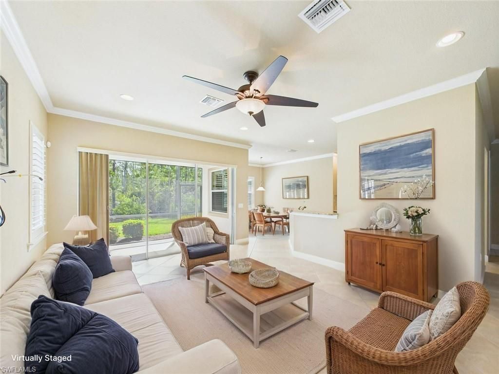 Live with ease and elegance in this beautifully upgraded 2-bedroom + den villa located in the highly sought-after Bridgetown community in Fort Myers. This low-maintenance, attached villa welcomes you with crown molding throughout and extended-height doorways that enhance its open, upscale feel.The kitchen offers granite countertops and a reverse osmosis system for purified water right at the sink. The spacious primary suite features a walk-in closet with custom cabinetry and a granite-adorned ba...Live with ease and elegance in this beautifully upgraded 2-bedroom + den villa located in the highly sought-after Bridgetown community in Fort Myers. This low-maintenance, attached villa welcomes you with crown molding throughout and extended-height doorways that enhance its open, upscale feel.The kitchen offers granite countertops and a reverse osmosis system for purified water right at the sink. The spacious primary suite features a walk-in closet with custom cabinetry and a granite-adorned bath with an upgraded shower door. You'll also enjoy thoughtful details like custom cabinetry in the garage and a well-maintained termite protection system from the time of construction.Step outside and take advantage of Bridgetown's resort-style amenities, including a resort pool, fitness center, tennis and pickleball courts, and a clubhouse perfect for social gatherings.Conveniently located just minutes from Gulf Coast Town Center, Miromar Outlets, and RSW International Airport, you'll enjoy effortless access to shopping, dining, and travel. Whether you're looking for a year-round residence or seasonal retreat, this villa offers the perfect blend of comfort, style, and convenience.