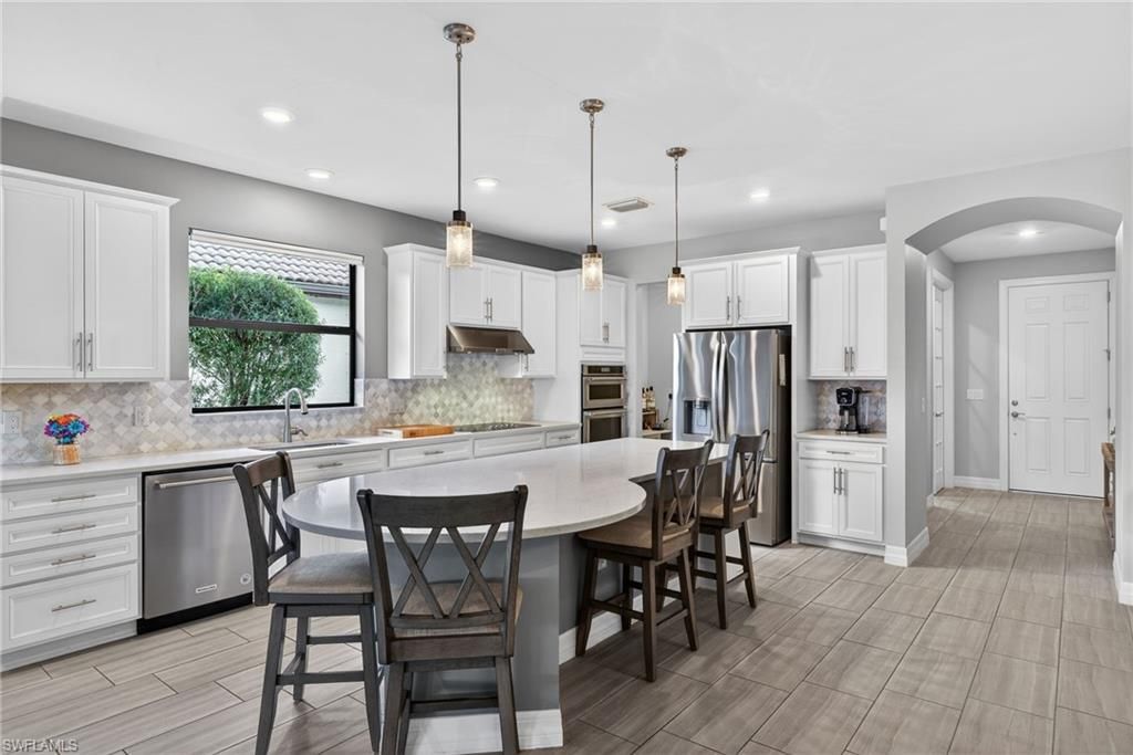Welcome to resort-style living in Bridgetown - where every day feels like a getaway. This vibrant 3 Bedroom + Den pool home delivers the Florida lifestyle you crave. Inside, you'll notice the light-filled, open design and seamless flow to the outdoors through pocketing sliding glass doors that create an incredible indoor/outdoor experience. At the heart of the home is a show-stopping kitchen designed to impress. Outfitted with upgraded appliances, a sleek electric cooktop, wall oven, quartz coun...Welcome to resort-style living in Bridgetown - where every day feels like a getaway. This vibrant 3 Bedroom + Den pool home delivers the Florida lifestyle you crave. Inside, you'll notice the light-filled, open design and seamless flow to the outdoors through pocketing sliding glass doors that create an incredible indoor/outdoor experience. At the heart of the home is a show-stopping kitchen designed to impress. Outfitted with upgraded appliances, a sleek electric cooktop, wall oven, quartz countertops, recessed and pendant lighting, and convenient lower cabinet pull-outs, this space is equal parts style and function. A brand-new refrigerator, plus new washer and dryer, add everyday peace of mind. Tile flooring runs throughout the main living areas, while luxury vinyl plank flooring enhances all bedrooms - absolutely no carpet anywhere. The private den, complete with French doors, offers the perfect flex space for a home office or quiet retreat. Step outside and you'll understand what makes this home truly exceptional. The sparkling pool and spa overlook a tranquil lake view with preserve beyond - a peaceful, private backdrop for sunset swims and relaxed evenings. The outdoor kitchen makes entertaining effortless, creating the ultimate setting for weekend gatherings, poolside dining, and year-round Florida living. And the lifestyle? Unmatched. Residents of Bridgetown enjoy premier amenities including a resort-style pool, lap pool, state-of-the-art fitness center, tennis, pickleball, bocce, and a vibrant social calendar. This is more than a home - it's your own private retreat in one of Fort Myers' most sought-after communities.