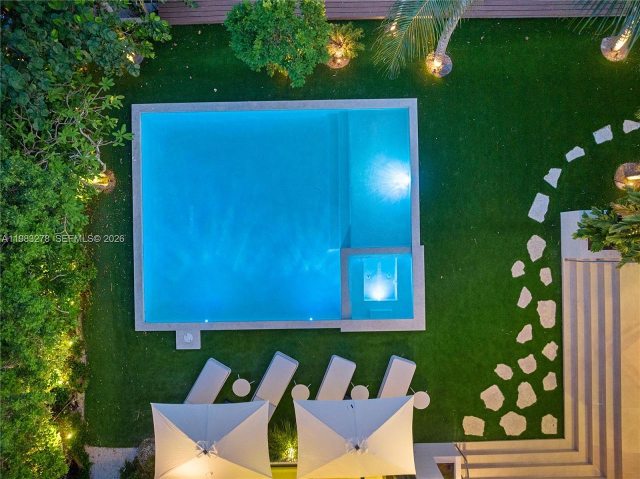 New construction, completed in 2023, offering the utmost in luxury and comfort. Boasting seven spacious bedroom suites and seven bathrooms, this home ensures ample space for family and guests. One of the seven bedrooms is located in a connected guest house, providing privacy and convenience. Inside, youll find a beautifully designed living room, dining room, and family room, perfect for relaxing and entertaining. For outdoor dining and entertaining, there is an additional dining room. Each bedro...New construction, completed in 2023, offering the utmost in luxury and comfort. Boasting seven spacious bedroom suites and seven bathrooms, this home ensures ample space for family and guests. One of the seven bedrooms is located in a connected guest house, providing privacy and convenience. Inside, youll find a beautifully designed living room, dining room, and family room, perfect for relaxing and entertaining. For outdoor dining and entertaining, there is an additional dining room. Each bedroom and the family room are equipped with televisions for your entertainment, and a laundry room. The outdoor amenities are truly exceptional, featuring a refreshing pool and relaxing hot tub, an outdoor kitchen for culinary delights, and a massive covered terrace with yet another outdoor kitchen.