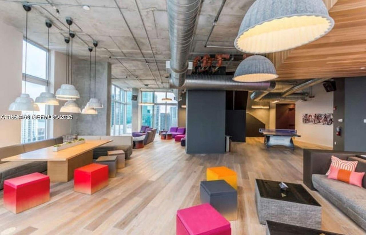 Beautiful building in the heart of Downtown Miami! Nice open studio! Stainless steel appliances, high ceilings, concrete flooring, modern Italian kitchen and bathroom cabinetry. Amazing pool at rooftop. Skyline lounge and club, gym, and sauna. 24/7 front desk. A few blocks from Bayfront park, Kaseya center and restaurants.