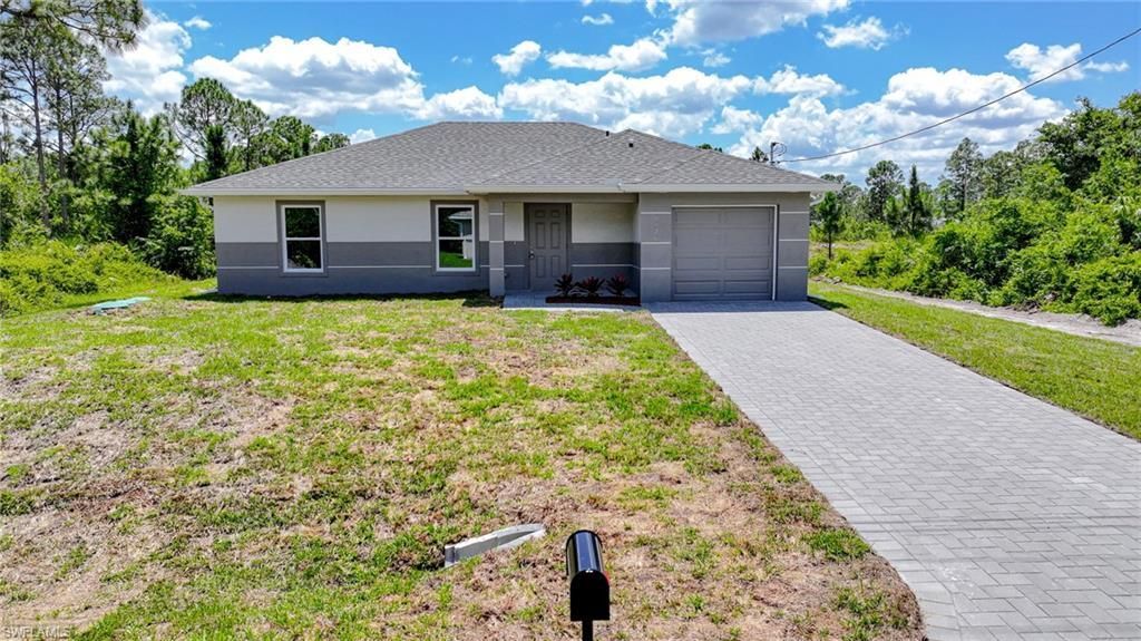 BRAND NEW HOME ON AN OVERSIZED 1/3 ACRE LOT! You Will Be Amazed By The Quality Of This Brand New Construction 3 Bedroom/2 Bathroom Home With Eastern Exposure For Those Beautiful Florida Sunrises All On An Oversized 1/3 Acre Lot In Lehigh Acres, FL. This Home Has 1258 SF Under Air And It Is COMPLETELY Finished! You Can Move Into It Today Or Use It As A Cash Flowing Rental Unit (High Demand). The Gourmet Kitchen Comes With Quartz Countertops, STAINLESS STEEL APPLIANCES, Real Wood Shaker SOFT TOUCH...BRAND NEW HOME ON AN OVERSIZED 1/3 ACRE LOT! You Will Be Amazed By The Quality Of This Brand New Construction 3 Bedroom/2 Bathroom Home With Eastern Exposure For Those Beautiful Florida Sunrises All On An Oversized 1/3 Acre Lot In Lehigh Acres, FL. This Home Has 1258 SF Under Air And It Is COMPLETELY Finished! You Can Move Into It Today Or Use It As A Cash Flowing Rental Unit (High Demand). The Gourmet Kitchen Comes With Quartz Countertops, STAINLESS STEEL APPLIANCES, Real Wood Shaker SOFT TOUCH Cabinet Doors & Drawers, Glass Tile Backsplash, Floor To Ceiling Pantry, And A Large Breakfast Bar. Other Upgrades Include; FREE BRAND NEW WASHER AND DRYER WITH PURCHASE OF THIS PROPERTY, HURRICANE IMPACT WINDOWS AND DOORS, Glass Back Door To Let In More LIGHT, Large Designer Porcelain Tile Flooring Throughout Entire Home, PAVER DRIVEWAY, High Ceilings, Large Living Room, Upgraded Baseboards, Large Dining Area, Custom Interior/Exterior Two-Tone Paint, Custom Ceiling Fans/Lights, Large Walk-In Closets, Quartz Countertops In The Bathrooms Along With Accent Tile Over The Tub Areas, New Landscaping Package, Eastern Exposure, Epoxy Coating In The Garage And On The Open Covered Lania, And A Laundry Area Including A New Washer And Dryer Inside The Home. This Home Is Close To Regional Shopping Malls, Golf Courses, Interstate I-75, Regional Airport, FGCU, Restaurants, Schools, Golf Courses, MLB Spring Training Baseball, Outdoor Parks, Boat Ramps, Amazing Fishing, And Those Amazing White Sand Beaches Of The Gulf Of America! The Pictures And Tour Are Of An Identical Home At A Different Location!