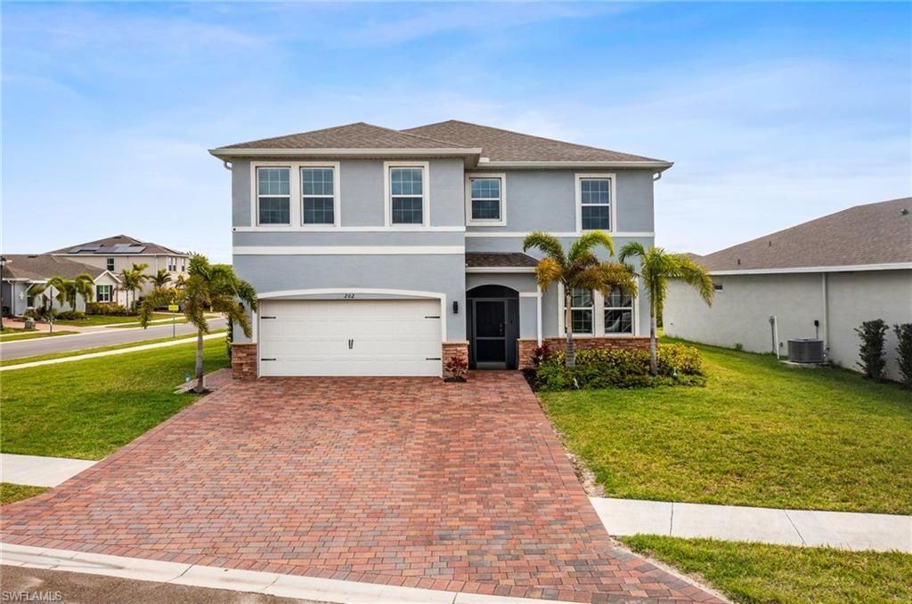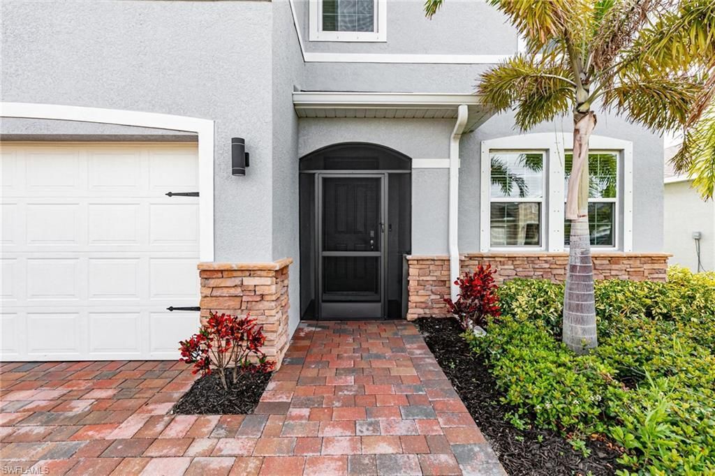 Welcome to this spacious and beautifully maintained 2-story, 5-bedroom + den, 3-bath smart home located in the highly desirable Stonewater community in Cape Coral! Perfectly positioned on a large corner lot, this home offers an ideal blend of space, comfort, and convenience in a prime central location.Step inside to discover a thoughtfully designed floor plan featuring a mix of ceramic tile and plush carpet flooring, creating a warm and inviting atmosphere throughout. The kitchen shines with ele...Welcome to this spacious and beautifully maintained 2-story, 5-bedroom + den, 3-bath smart home located in the highly desirable Stonewater community in Cape Coral! Perfectly positioned on a large corner lot, this home offers an ideal blend of space, comfort, and convenience in a prime central location.Step inside to discover a thoughtfully designed floor plan featuring a mix of ceramic tile and plush carpet flooring, creating a warm and inviting atmosphere throughout. The kitchen shines with elegant granite countertops, ample cabinetry, and plenty of room for cooking and gathering. Upgraded light fixtures and recently updated bathroom fixtures (2026) add a stylish, contemporary touch throughout the home.The second story provides additional privacy and flexible living space, while the main level offers seamless flow for everyday living and entertaining. A versatile den makes the perfect home office, study, or guest space.Retreat to the well-appointed bathrooms, each featuring upgraded shower heads that enhance comfort and create a spa-like experience. The home also offers a convenient laundry area with a hookup for a laundry sink, adding extra functionality for everyday living.Enjoy outdoor living with a screened-in front entrance, plus added convenience with an extended driveway and generous yard space thanks to the oversized corner lot. The exterior of the home has also been recently painted (2026), enhancing curb appeal and long-term value. Ideally located within walking distance to Mariner High School, Mariner Middle School, local libraries, shopping, and a variety of popular restaurants, this home places everything you need right at your fingertips in a GREAT central Cape Coral location.Stonewater residents enjoy access to outstanding community amenities, including a resort-style pool, fitness center, pickleball courts, toddler playground, and the added security of two gated entrances-all within a newer, well-kept neighborhood.This exceptional home offers the perfect combination of size, upgrades, smart home features, and location-schedule your showing today!
