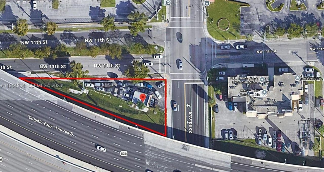 Strategic 4,834SF triangular corner parcel, 190ft of frontage along a high-traffic thoroughfare adjacent to the Dolphin Exprwy, offering exceptional visibility and easy highway access. Currently classified use code?1066 (Vacant Land Commercial), zoned 6101 Commercial Land. Parcel overlays Citys T5-O Urban Mixed-Use zone, which allows ground-floor commercial, office, lodging, residential uses, and civic functions by right, and permits development up to 5 stories. Ideal for static or digital billb...Strategic 4,834SF triangular corner parcel, 190ft of frontage along a high-traffic thoroughfare adjacent to the Dolphin Exprwy, offering exceptional visibility and easy highway access. Currently classified use code?1066 (Vacant Land Commercial), zoned 6101 Commercial Land. Parcel overlays Citys T5-O Urban Mixed-Use zone, which allows ground-floor commercial, office, lodging, residential uses, and civic functions by right, and permits development up to 5 stories. Ideal for static or digital billboards and future development. Shape and corner configuration make it a high-impact branding site with long-range signage exposure.