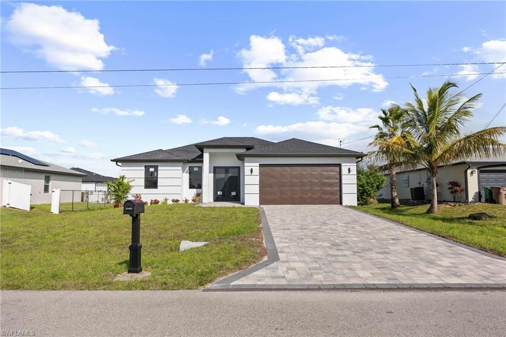 Stunning Brand-New Construction Home in Prime Cape Coral - No HOA - SELLER MAY ASSIST WITH CLOSING COSTS AND/OR INTEREST RATE BUYDOWN! CITY WATER & SEWER !!Welcome home to modern Florida living! This beautifully designed 3-bedroom + 2-bathroom residence with a 2-car garage offers exceptional craftsmanship, elegant finishes, and a bright, open layout perfectly suited for today's lifestyle. Step inside and experience a light-filled interior enhanced by large impact-resistant windows and doors, sho...Stunning Brand-New Construction Home in Prime Cape Coral - No HOA - SELLER MAY ASSIST WITH CLOSING COSTS AND/OR INTEREST RATE BUYDOWN! CITY WATER & SEWER !!Welcome home to modern Florida living! This beautifully designed 3-bedroom + 2-bathroom residence with a 2-car garage offers exceptional craftsmanship, elegant finishes, and a bright, open layout perfectly suited for today's lifestyle. Step inside and experience a light-filled interior enhanced by large impact-resistant windows and doors, showcasing the gorgeous white and gray marble-style tile flooring that flows seamlessly throughout the home. The spacious main living area features 12' ceilings, while all bedrooms boast 9'5 raised ceilings, creating an inviting and expansive feel.The gourmet kitchen is a true showpiece, offering: Premium quartz countertops Stainless steel appliances (including a self-cleaning oven) Soft-close cabinetry Modern kitchen backsplash Energy-efficient LED recessed lightingYour luxurious primary suite is a serene retreat featuring a large walk-in closet, dual quartz vanities, and a spa-style walk-in shower with glass enclosure.Built with durability, comfort, and efficiency in mind, this home includes: High-impact windows and doors 3.0 Ton 16 SEER HVAC system 30-year architectural shingles Automatic irrigation systemEnjoy outdoor living year-round on your spacious under-truss lanai, complete with a ceiling fan-perfect for relaxing or entertaining.Located along Burnt store Rd area, close to Oasis Elementary School , this home offers unbeatable convenience with quick access to major retailers, dining, schools, and entertainment.This exceptional property offers superior construction, stylish upgrades, and an incredible value-a rare opportunity in Cape Coral!Schedule your private showing today and discover the beauty and comfort of this stunning new home!