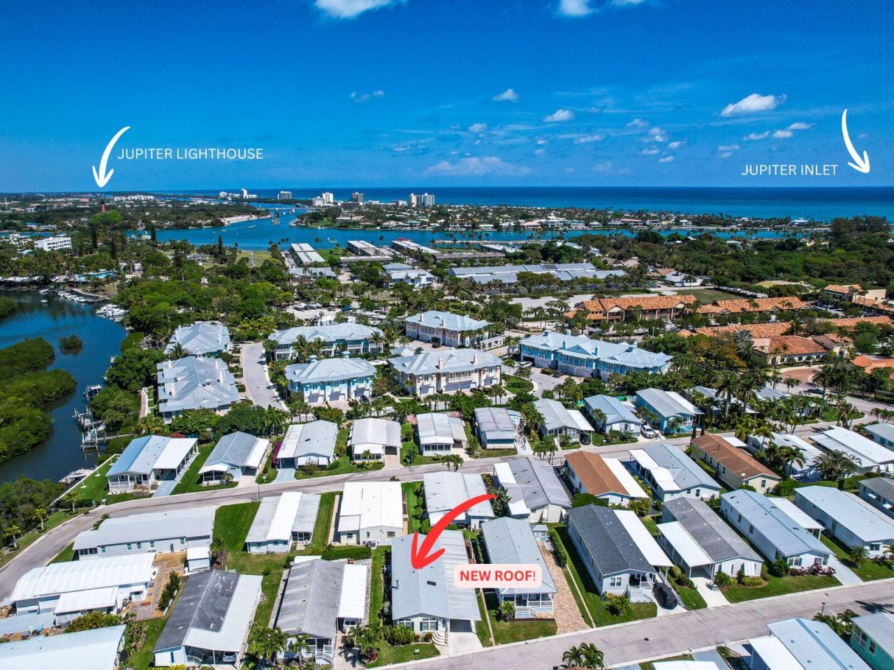 NEW ROOF March 2026! Hurricane rated architectural asphalt shingle roof and new skylight just completed! Turnkey, fully furnished, 1,632 sq. ft. home in sought after Jupiter River Park, an active 55+ community where you own your land. Open floor plan with stunning chef's kitchen, granite countertops and island and stainless steel appliances. Large master suite with walk-in closet and walk-in shower. Two additional bedrooms with hall bath. Spectacular oak wood flooring and wood burning firepl...NEW ROOF March 2026! Hurricane rated architectural asphalt shingle roof and new skylight just completed! Turnkey, fully furnished, 1,632 sq. ft. home in sought after Jupiter River Park, an active 55+ community where you own your land. Open floor plan with stunning chef's kitchen, granite countertops and island and stainless steel appliances. Large master suite with walk-in closet and walk-in shower. Two additional bedrooms with hall bath. Spectacular oak wood flooring and wood burning fireplace. Long carport, extra large shed with A/C, water and electric. HD cable TV, high speed internet included in monthly COA of $218.50. Boat slips rent for $1,200 per year when available. Enjoy a sunset at Jupiter River Park marina, bike along Jupiter's A1A bike path, or walk to Dubois Park, Carlin Park, Jupiter Inlet, Jupiter Beach, Inlet Village Restaurants, executive golf, pickleball courts an the newly renovated Maltz Theatre!