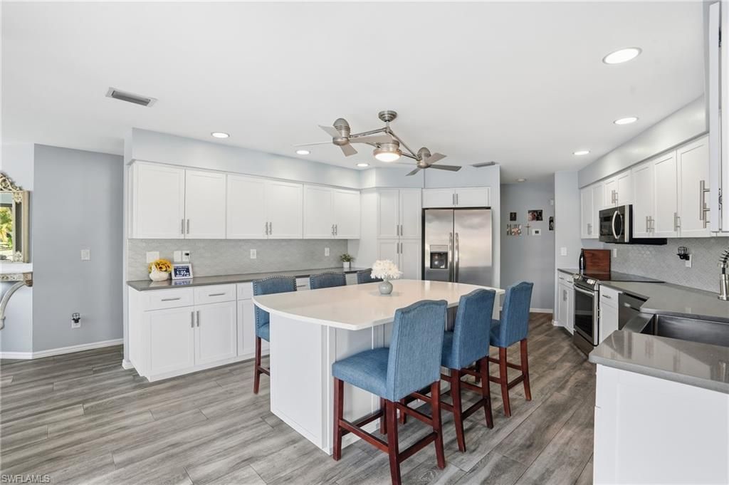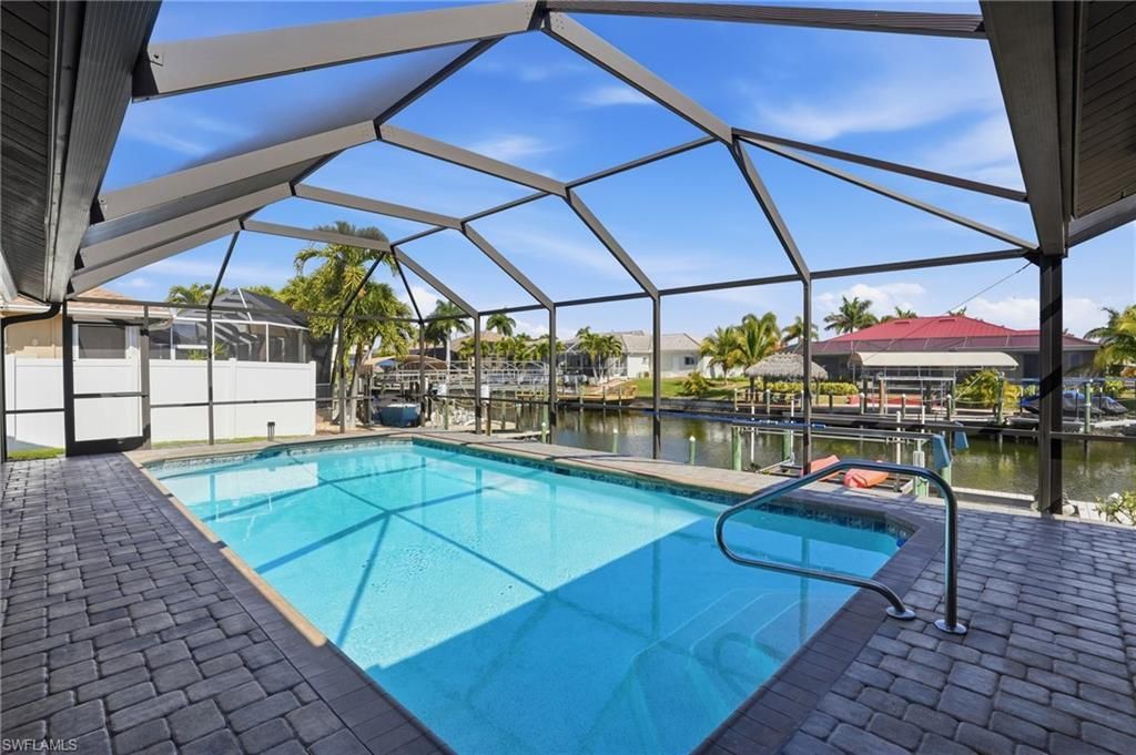 Welcome to this stunning waterfront 3 bedroom, 2.5 bathroom pool home with a 2-car garage and family room, perfectly situated in Cape Coral with 80 feet of canal frontage, a private dock, and boat lift - perfect for embracing the Southwest Florida boating lifestyle. CLICK ON THE VIRTUAL TOUR LINK 1 FOR THE VIDEO AND VIRTUAL LINK 2 FOR THE 3D TOUR. This bright and airy home offers beautiful water views and features tile flooring in the main living areas along with high vaulted ceilings and planta...Welcome to this stunning waterfront 3 bedroom, 2.5 bathroom pool home with a 2-car garage and family room, perfectly situated in Cape Coral with 80 feet of canal frontage, a private dock, and boat lift - perfect for embracing the Southwest Florida boating lifestyle. CLICK ON THE VIRTUAL TOUR LINK 1 FOR THE VIDEO AND VIRTUAL LINK 2 FOR THE 3D TOUR. This bright and airy home offers beautiful water views and features tile flooring in the main living areas along with high vaulted ceilings and plantation shutters. The living and dining rooms are perfect for gathering with family and friends and feature a glass slider to the lanai showcasing peaceful canal views. The eat-in kitchen is well-appointed with ALL stainless steel appliances, a deep stainless farmhouse sink, quartz countertops with ample workspace, abundant cabinetry, a cabinet pantry, and a center island with seating. Two glass sliders lead directly to the lanai, creating seamless indoor/outdoor entertaining. Just off the kitchen, the family room offers serene water views through a large window and an additional glass slider to the lanai, expanding your living and entertaining space. The generously sized primary suite features lanai access, dual walk-in closets, and a private bathroom with a dual-sink vanity, soaking tub, walk-in shower, and linen closet. Guest bedrooms are located on a split floor plan, offering privacy, with a shared guest bathroom nearby. Outdoors, your private oasis awaits on the spacious lanai, complete with plenty of room for entertaining, a wet bar, half bathroom, and a heated pool for year round enjoyment. Cast a line, launch a kayak, or set sail for endless water adventures right from your backyard with a private dock and floating dock. 2022 ROOF - 223 EXTERIOR + DOCK PAINTED - 2023 GUEST SHOWER REMODLE - 2021 IMPACT WINDOWS & FRONT DOOR - 2022 ACCORDION SHUTTER ON LANAI WINDOW - 2022 STORM SMART ROLL DOWN CURTAINS FOR LANAI - 2022 GARAGE DOOR - 2022 POOL PUMP & HEATER - 2022 A/C - 2023 WATER HEATER - 2025 REFRIGERATOR. Conveniently located close to local shopping & boutiques, fine & casual dining, LIVE entertainment, and a short car ride to award-winning beaches! Schedule your showing TODAY!