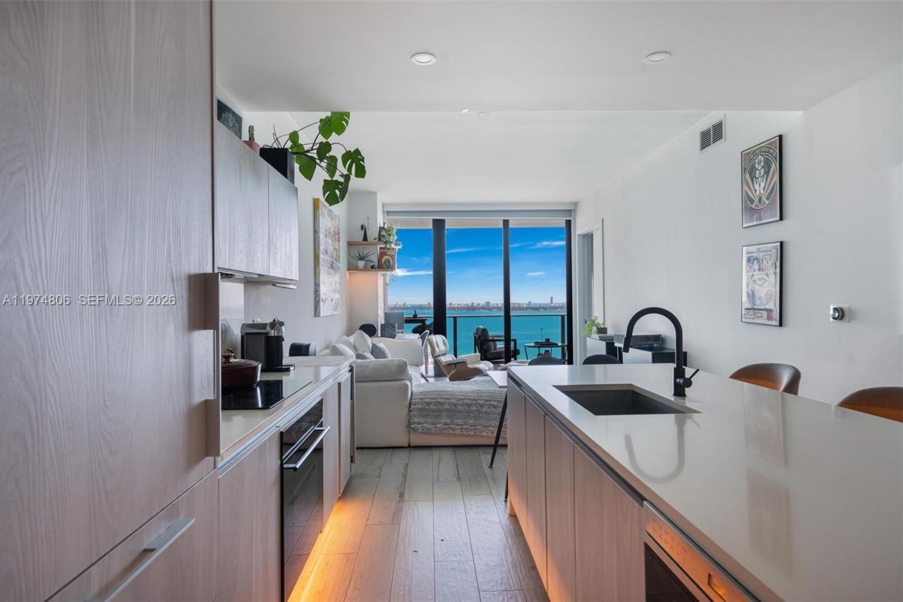 Perched on the 23rd floor of Gran Paraiso, this oversized 1-bedroom, 2-bathroom residence seamlessly blends high-floor elegance with smart-home sophistication. Accessed via a private elevator entry, the home opens into a meticulously curated space featuring custom designer wallpaper, a hotel-inspired foyer, and bespoke cabinetry accented by integrated LED lighting and waterfall countertops. Beyond the 8-foot-deep terrace offering panoramic bay and ocean views, the interior boasts premium upgrade...Perched on the 23rd floor of Gran Paraiso, this oversized 1-bedroom, 2-bathroom residence seamlessly blends high-floor elegance with smart-home sophistication. Accessed via a private elevator entry, the home opens into a meticulously curated space featuring custom designer wallpaper, a hotel-inspired foyer, and bespoke cabinetry accented by integrated LED lighting and waterfall countertops. Beyond the 8-foot-deep terrace offering panoramic bay and ocean views, the interior boasts premium upgrades including a wine cellar, electric blinds, and a fully integrated tech suite featuring Sonos, Philips Hue, and Nest systems. Complemented by a rare LOBBY LEVEL parking spot and world-class amenities?from a bowling alley to tennis courts, spa, pool with towel service, gold simulator, cinema room to cite a few ?this residence offers an unmatched lifestyle just steps from the Design District and minutes from Miami Beach.