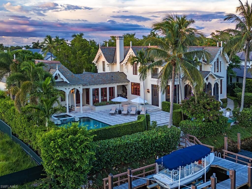 A love story between historic beauty and coastal elegance, entwined on a lush half-acre in the heart of Aqualane Shores, this extraordinary residence is a rare and radiant expression of architectural romance. Carefully curated and masterfully constructed, the home is a celebration of artistry — where restored cathedral relics, monumental design elements, and bespoke craftsmanship come together in a space that feels at once timeless and deeply intimate. From soaring arc...A love story between historic beauty and coastal elegance, entwined on a lush half-acre in the heart of Aqualane Shores, this extraordinary residence is a rare and radiant expression of architectural romance. Carefully curated and masterfully constructed, the home is a celebration of artistry — where restored cathedral relics, monumental design elements, and bespoke craftsmanship come together in a space that feels at once timeless and deeply intimate. From soaring arched ceilings, to intricately carved stone details and hand-finished woodwork, every surface tells a story — one shaped by reverence for history and a love of fine detail. Elements sourced from centuries-old churches have been reimagined and thoughtfully placed, bringing a quiet grandeur and sacred beauty to everyday living. The home offers four luxurious bedrooms, each designed as a private retreat, a richly appointed study, and a large loft/game room for moments of play and connection. Sunlight pours through dramatic windows, casting warm light across rich textures and custom finishes that invite both admiration and touch. Outside, a private boat dock with lift extends your living space onto the water, offering direct access to the Gulf and endless opportunities to explore the natural beauty that surrounds. Lush landscaping creates a sense of seclusion, while the home’s commanding presence remains soft, elegant, and welcoming. Every nook, corner, and crevice has been finished with intention, shaped by artisans and guided by a vision of lasting beauty. This is not just a home, it’s a place that stirs the soul, a dwelling that reflects both passion and peace. Aqualane Shores is known for its prestige, but this home stands apart from the rest. It is rare, romantic and unforgettable.