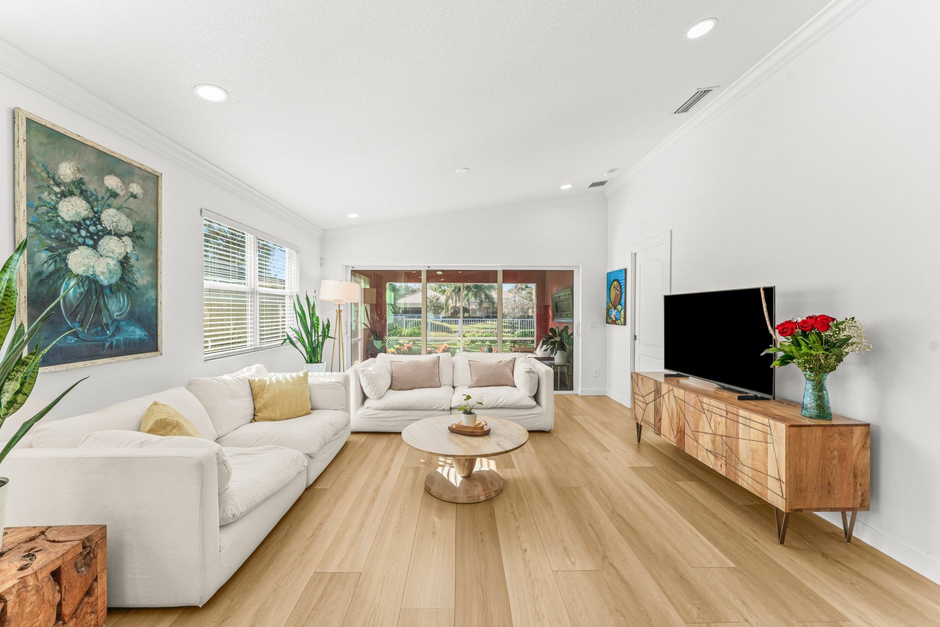 Welcome home to this beautifully updated residence where comfort, style, and thoughtful upgrades come together seamlessly. Luxury 6.5 mm vinyl flooring flows throughout the home, complemented by crown molding, new lighting, ceiling fans, and custom blinds for a bright, polished feel. The heart of the home features a refreshed kitchen with new white quartz countertops, a brand-new Whirlpool 4-burner range and single oven, and a sleek Hauslane stainless steel ducted range hood with LED lighting. A...Welcome home to this beautifully updated residence where comfort, style, and thoughtful upgrades come together seamlessly. Luxury 6.5 mm vinyl flooring flows throughout the home, complemented by crown molding, new lighting, ceiling fans, and custom blinds for a bright, polished feel. The heart of the home features a refreshed kitchen with new white quartz countertops, a brand-new Whirlpool 4-burner range and single oven, and a sleek Hauslane stainless steel ducted range hood with LED lighting. A spacious laundry room adds convenient storage and laundry tub. Retreat to the spacious primary suite offering a walk-in closet with a fully renovated custom master closet and a stunning spa-like bathroom featuring Tulum limestone, a glass-enclosed shower...... new countertops, sinks, and doors. The second bathroom is equally impressive with matching Tulum limestone, a bathtub with glass enclosure, and all new finishes. Every bedroom includes its own walk-in closet, and an additional flexible space provides the perfect option for a home office, guest room, or extra storage. Enjoy peace of mind with major system upgrades including a newer AC (2024), new water heater (2025), impact windows (2025) with warranty, central vacuum system and whole-home saltwater filtration. Exterior improvements include a brand-new front door, updated landscaping for added privacy, LeafGuard gutters, new fence, new patio tile, and a new garage door motor. Step outside to a covered patio overlooking tranquil lake and tree views an ideal setting for relaxing or entertaining. Situated on a desirable waterfront lot and complete with a 2-car garage, this move-in-ready home offers the perfect blend of modern upgrades and serene living.