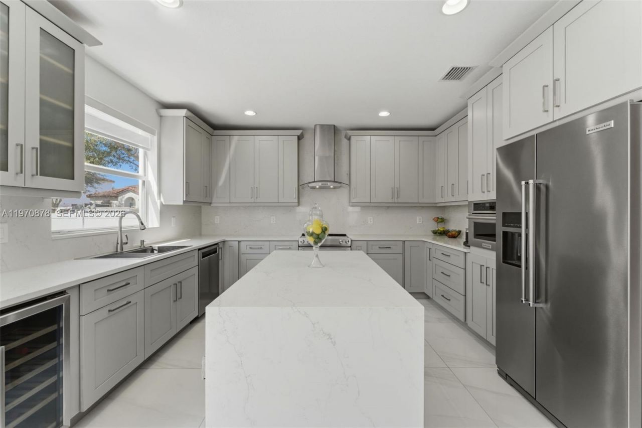 Move-in ready and thoughtfully remodeled! This 4-bedroom, 3-bath two-story home offers privacy and room to enjoy Miami living. The home features high-gloss porcelain floors on the first story that reflect natural light throughout. Vinyl flooring on the second story. The two-tone, modern kitchen offers plenty of storage, soft-close doors, quarts countertops and SS appliances. French doors lead to a secluded outdoor area ideal for weekend gatherings. The upstairs has a split layout, primary suite ...Move-in ready and thoughtfully remodeled! This 4-bedroom, 3-bath two-story home offers privacy and room to enjoy Miami living. The home features high-gloss porcelain floors on the first story that reflect natural light throughout. Vinyl flooring on the second story. The two-tone, modern kitchen offers plenty of storage, soft-close doors, quarts countertops and SS appliances. French doors lead to a secluded outdoor area ideal for weekend gatherings. The upstairs has a split layout, primary suite on one side + bedrooms on the other, conveniently for privacy. The rooms are generously sized, especially the master which includes a walk-in closet and spa-style bath. Flex space can be used as a den, office space, play-room, etc. 2 car garage for all your storage needs. Enjoy community amenities such as pool, kiddie pool, playground, gym and BBQ area. Maintenance includes front lawn and security.